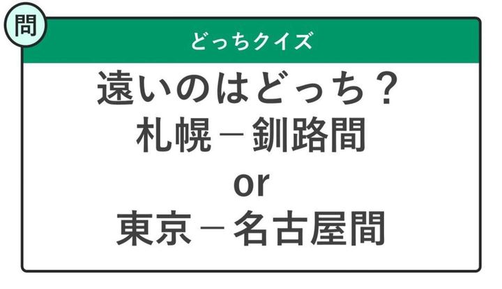 【どっちクイズ】遠いのはどっち?札幌-釧路間or東京-名古屋間