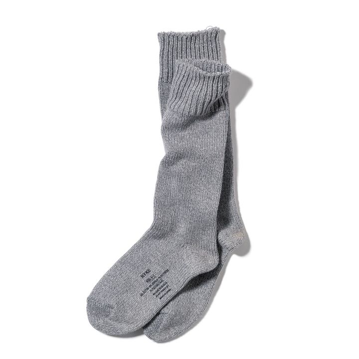 ミリタリーソックスからインスピレーションを受けてデザインされた、リッチな風合いのミドル丈ソックス。ふっくらとした厚みのある生地で、普通のソックスとは一線を画すルックスとはき心地が魅力です。ソックス¥4,180(ハイク/ボウルズ)