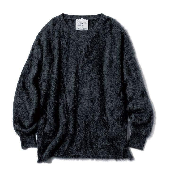ファー加工を施したカシミヤ100%の贅沢なシャギーニットは、何シーズンも人気を誇るカオスの冬の名品アイテム。雰囲気のある見た目に加え、素肌に直接着たくなる滑らかな肌触りも人気の理由。ニット¥64,900(カオス/カオス丸の内)