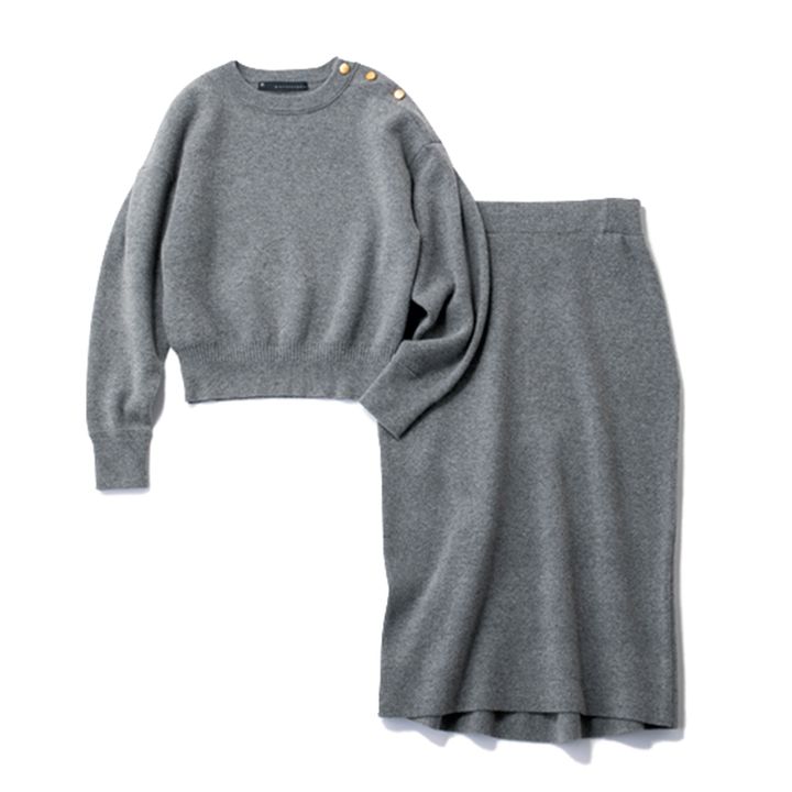 ニットトップス¥29,700ニットスカート¥28,600(ともにマルティニーク/マルティニーク ルミネ横浜)