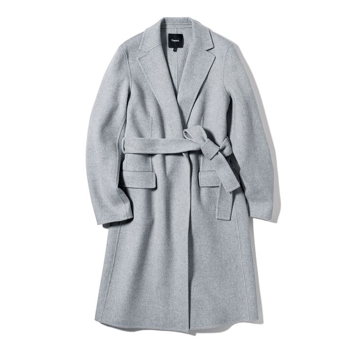 カシミヤ混の上質なリバーコート。セットインのミニマルなシルエットで、トレンドにもテイストにも左右されないスマートなデザインが◎。着こなしの核となるアウターこそ、信頼できるブランドで選びたい。コート¥89,100(Theory)