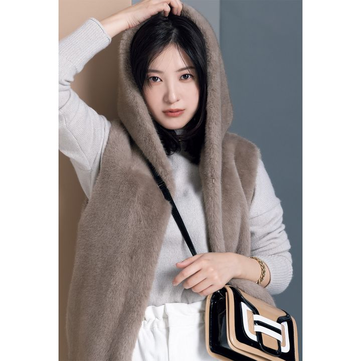 吉高さんの透けるような白肌に似合う、ベージュのワントーンコーデ。一歩間違えると老けがちなカラーだからこそ、フェイクファーやフード…チャーミングな要素を意識すると年相応に着こなせるはず。