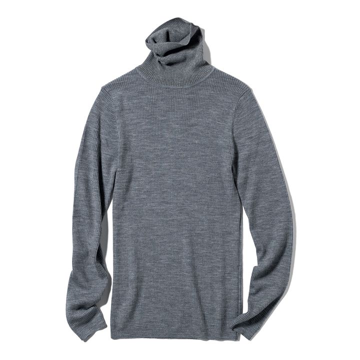 衿部分に綿混素材を使い、快適に着られる大人気アイテム。とにかく活躍するグレータートルは価格も優秀なこちらで決まり!タートルニット「首のチクチクを抑えたリブタートルネック洗えるセーター」¥1,990(無印良品/無印良品 銀座)
