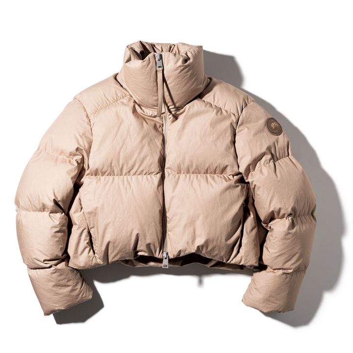 オーバーサイズのクロップト丈で今っぽくサマになるシルエット。柔らかな質感や同色のディスクロゴなど、上品な仕様も秀逸。ダウンジャケット「Garnet Cropped Puffer」¥248,600(カナダグース/カナダグースジャパン)