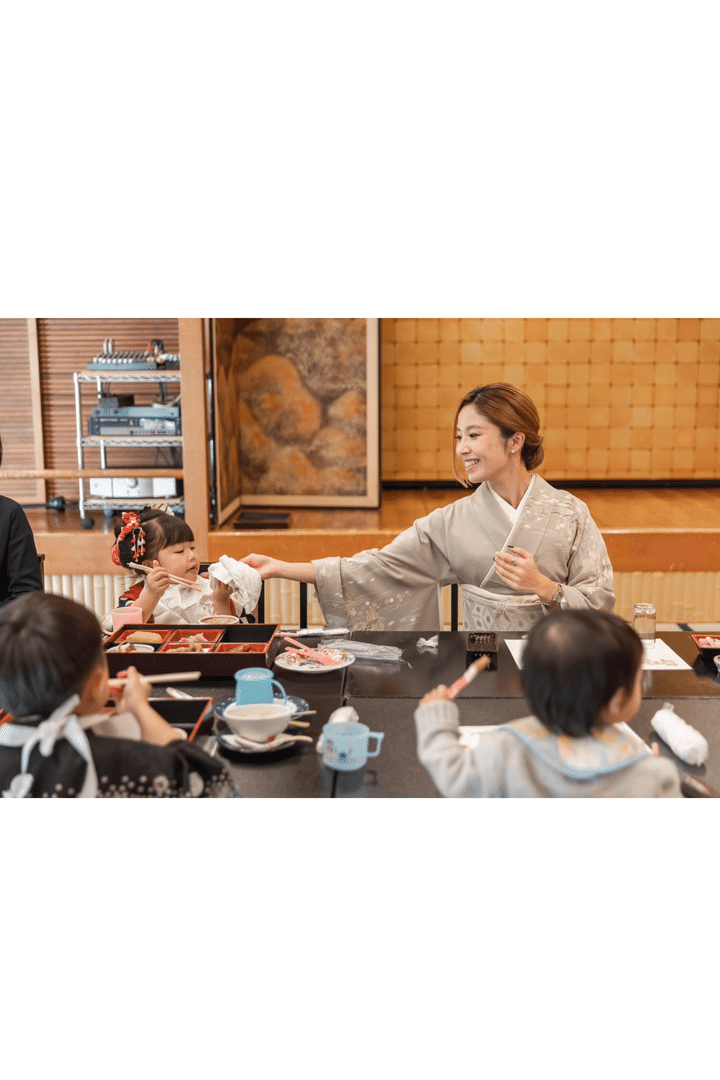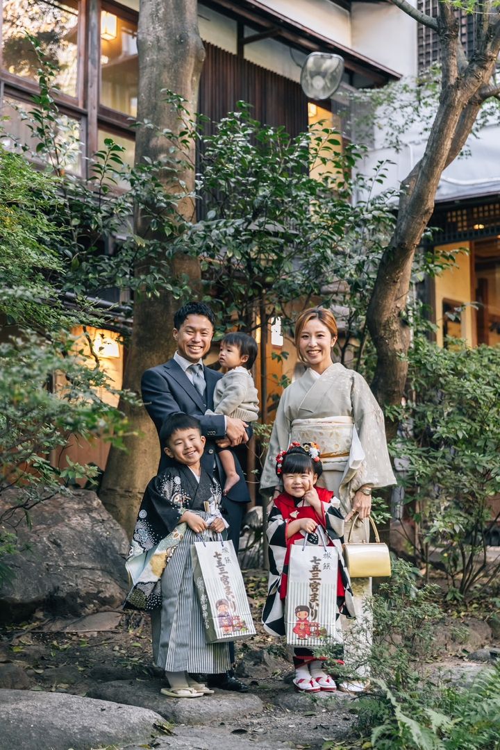 「暑さ対策で12月頭に熱田神宮でお詣りをしました。前撮りとは別の着物だったので出張カメラマンにも来てもらいました。神宮内はカメラマン同行不可のため自分の携帯で撮影し、その後『賀城園』という料亭に来てもらって撮影。食事シーンなどスタジオで撮るのとはまた違った写真が残せてとても気に入っています。今回は夫の姉の紹介で『LOVEGRAPH』という出張撮影サービスのサイトから、写真の雰囲気が好みだっためいさんを選んで予約。愛知県で七五三の出張撮影可能なカメラマンがずらりと出てくるので、インスタなどで個々に探すよりも便利でした」吉田幸奈さん・35歳/主婦(6歳の男の子と4歳の女の子と2歳の男の子ママ)