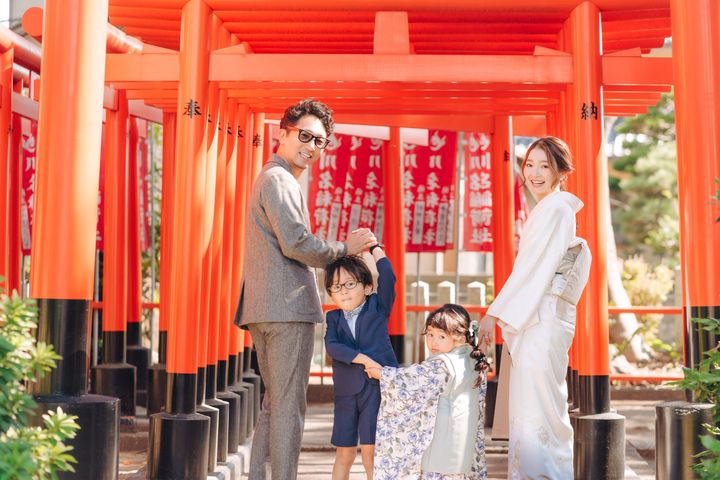 「子どもにとって七五三のお詣りは楽しいものではないと思うので、できるだけ短時間で済むよう、前撮りはなしでお詣り当日に出張カメラマンをお願いしました。長男の5歳の七五三でお願いしたカメラマンさんをリピートしたかったので、受付開始初日に予約しました。場所はいくつか候補を出してもらいましたが、移動が楽で、写真が映えそうな川原神社を選びました。10月の撮影でしたが気温が思ったより高く、だんだん暑くて真顔の写真が増えてしまったので、もう少し涼しくなってからでもよかったかも、とちょっぴり後悔。慣れない下駄で砂利道を歩くのも苦労したので、砂利のない場所を選ぶのも大事かもしれません」若子麻衣さん・36歳/主婦(6歳の男の子と3歳の女の子ママ)