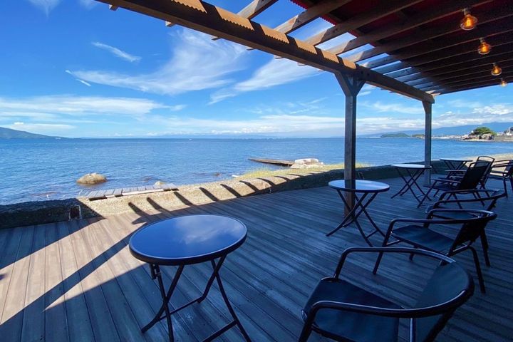 テラス席で、駿河湾と富士山が織りなす「沼津ブルー」を堪能