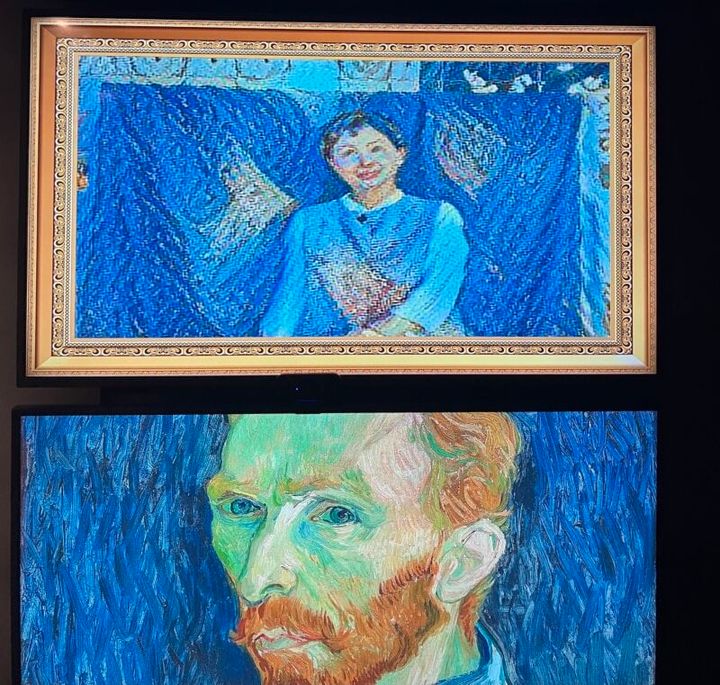 ドームでの上映以外の展示や企画も面白く、写真を撮れるブースも。壁のボタンを押して撮った自分たちの姿がゴッホの作品のようなタッチの仕上がりになるという面白い試みもありさっそく息子とパチリ!