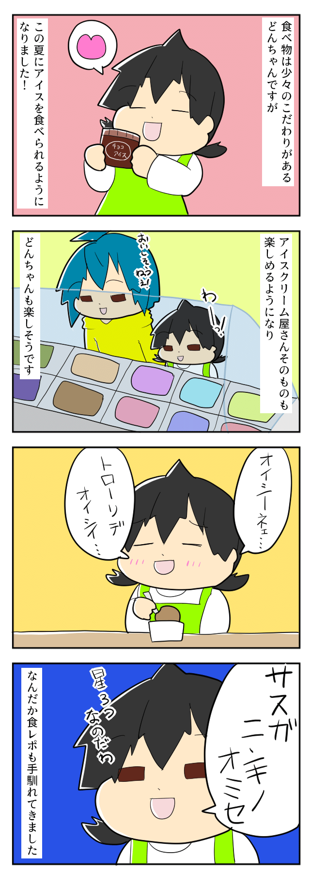 当初、「冷たくて食べられない・・・」とどんちゃんの苦手な食べ物だったアイスですが、