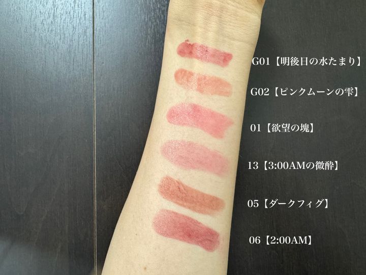 リップモンスターツヤバースとブルベ向けリップモンスター計6色を比較スウォッチ