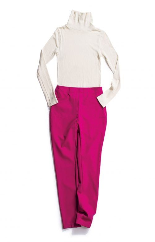 〈アクティブカラー〉 スリムパンツに合わせるのはボリュームトップスが基本