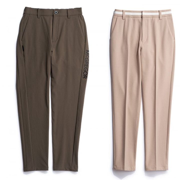 マニッシュになりすぎないよう、軽やかに見えるトーンをセレクトするのがおすすめ。右は吸湿発熱効果のあるソフトな風合いや、すっきりしたシルエットも魅力。左は伸びのいいストレッチ素材で、脇の切り替えがスマートに見せます。パンツ〈右〉¥27,500(ジュン アンド ロペ) 〈左〉¥23,100(マックレガーゴルフ/双日インフィニティ)