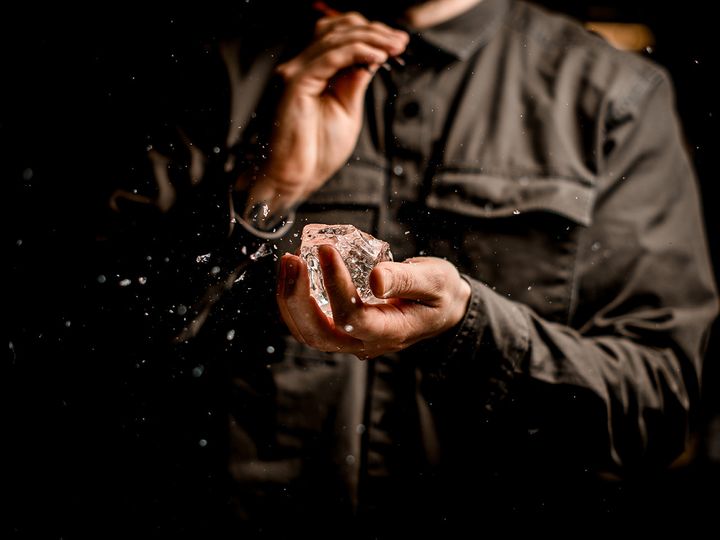 だんだんと角が取れて丸みを帯びた形になっていく氷は、シェイクに使うためのものだ。