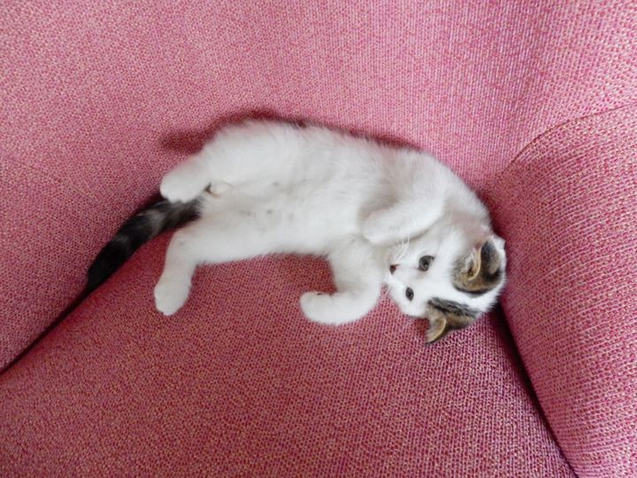 赤ちゃんのオレシリーズ。このソファ、爪研ぎしやすくて好きやったなー。ピンクでかわいいやろー!