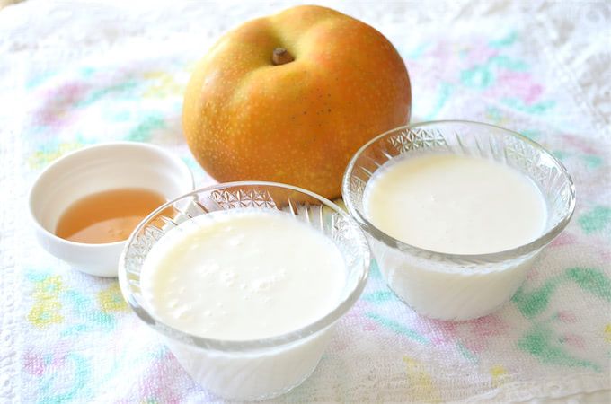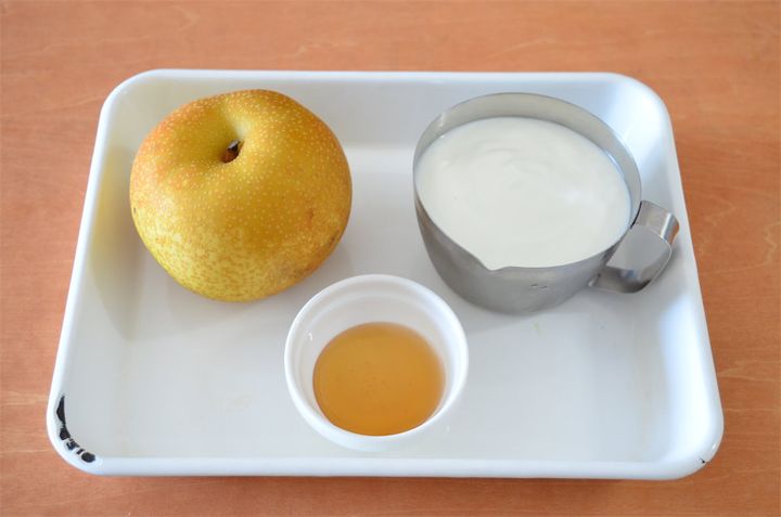 そのまま口にススっと。ヨーグルトの酸味が梨の甘味で緩和され、砂糖を入れていないのに自然な甘味を感じます。