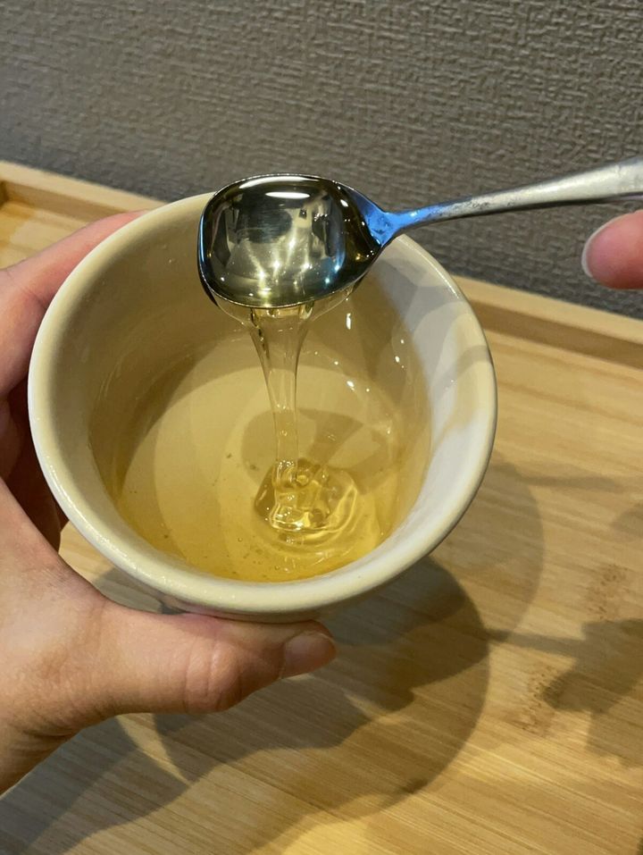 冷やすととろみがつき、蜂蜜のような仕上がり。このシロップは離乳食後期から使用できます。