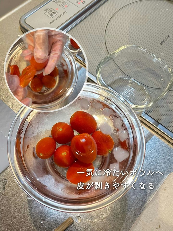そこで、今回はミニトマトの皮が苦手な子でも食べやすいよう、湯むきをしてマリネにしてみます。