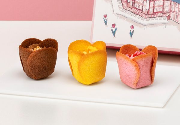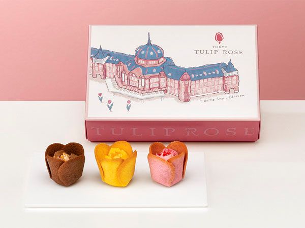 繊細なラングドシャクッキー細工のチューリップの中に、とろけるショコラクリームのローズを咲かせました。甘酸っぱい「ベリー」、深みある「キャラメルナッツ」、爽やかな「パッションマンゴー」の3つの味がセットになっています。東京駅を訪れたらぜひ手に入れてみて。