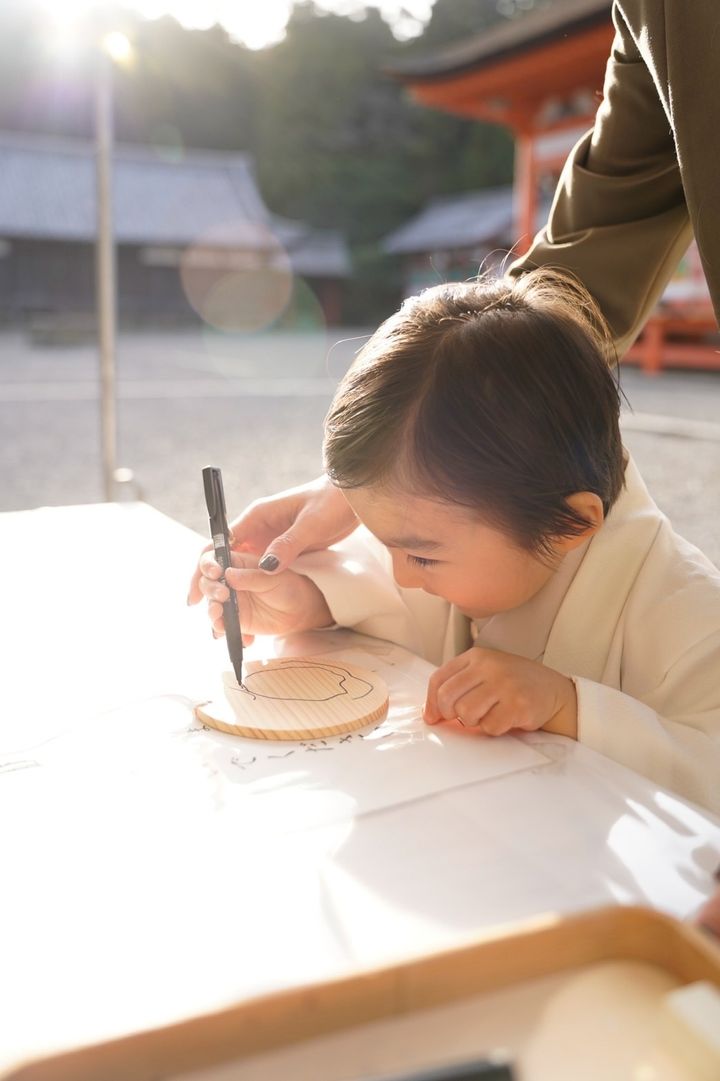 「元々なにもしない予定だったのですが、きっかけはまわりの男の子ママが3歳も撮影だけはすると言っていたこと。先に撮影をし終えた子の小さな袴姿を見たらとても可愛くて、12月に大急ぎで準備しました。息子の和装は『RENCA』というネットショップで簡単に着付けができる袴をレンタル。ぶっつけ本番で夫が挑戦してもサマになり、自宅で準備が済ませられたのでとても楽でした。下駄でうまく歩けずたどたどしい感じや、3歳だからこその小さなシルエットを写真に残せてよかったなと思っています。ロケーションフォトは同世代の子どもを持つママカメラマンさんにお願いし、飴を頬張る顔や絵馬に一生懸命絵を描く姿など、押さえてほしい表情や瞬間をしっかり残してもらえました」笹瀬裕可奈さん・36歳/webショップ経営(4歳の男の子ママ)