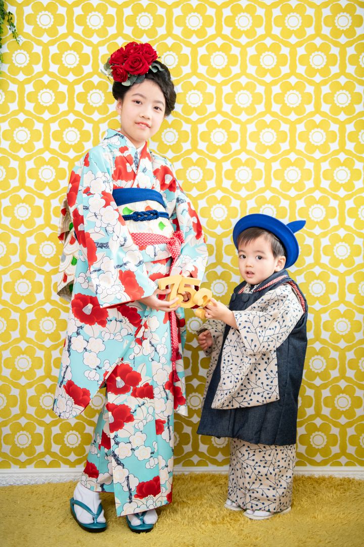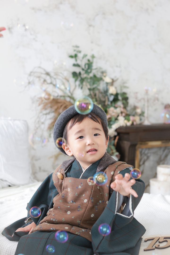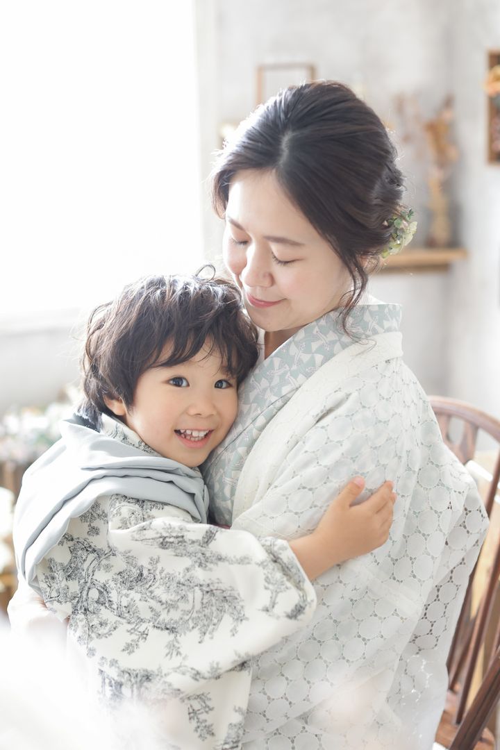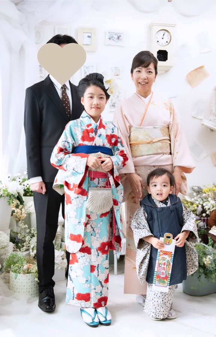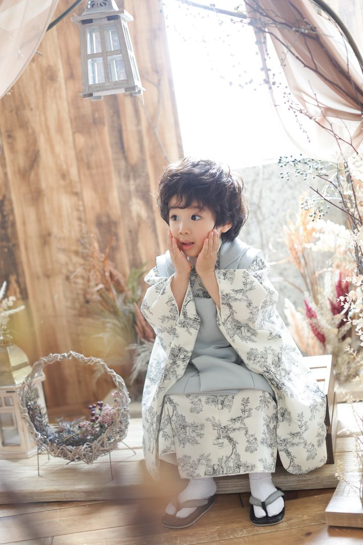「数年前の姉の七五三はコロナ禍で控えめになってしまったので、弟のときはしっかりやろうと心に決めていました。女の子は二回ありますが、男の子は5歳だけなのが寂しく物足りない気がしており、10歳の姉も着物を着て一緒に撮影するなら姉が中学生になってしまう5歳よりも3歳のほうがいいと思ったのも理由です。熱田神宮でお詣りをしたので、近くの『SNOW*IN熱田スタジオ』に撮影と着付けをお願いしました。ハットをかぶりましたが、被布ならではの小物合わせで可愛い写真が撮れて大満足です」多田まゆ子さん・38歳/主婦(11歳の女の子と4歳の男の子ママ)