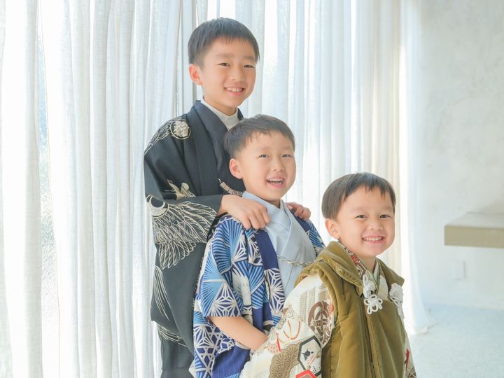 「いつか兄弟での着物姿を撮りたいと思っていた私。長男の年齢的にもちょうどいい気がしたので、三男の3歳の七五三の機会に実施しました。撮影当日に子どもたち自身に好きな着物を選ばせたのですが、親が着せたいものとは違っていて…(笑)。でも、それぞれの個性が出る写真になったのでこれはこれでよかったなと思います。その場でヘアセットもしてもらおうと思ったのですが、恥ずかしがってしまい家でやっておけばよかったかな、と少し後悔しました。5歳の頃には成長してまた違った姿になっていると思うので、できればそこでも撮影できたらと思っています」松本彩花さん・35歳/主婦(9歳と6歳と3歳の男の子ママ)