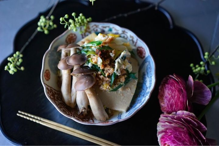 FitFoodies安藤夏未さんのレシピ「高野豆腐と大豆ミートと野菜の玉子とじ」