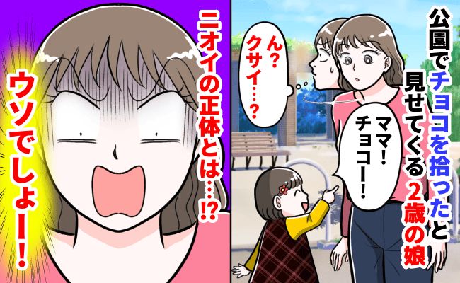 「くっさ〜ッ!」公園でチョコを拾った2歳の娘。甘いニオイはせず、ツンと鼻をさす異臭?その正体は