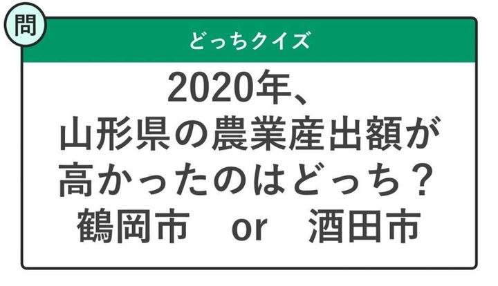 3. 【どっちクイズ】2020年、山形県の農業産出額が高かったのはどっち?鶴岡市 or 酒田市