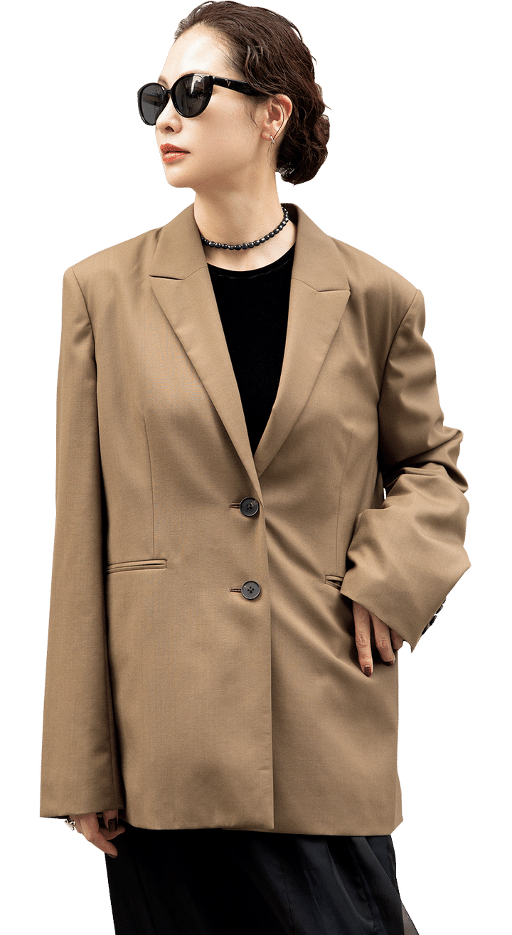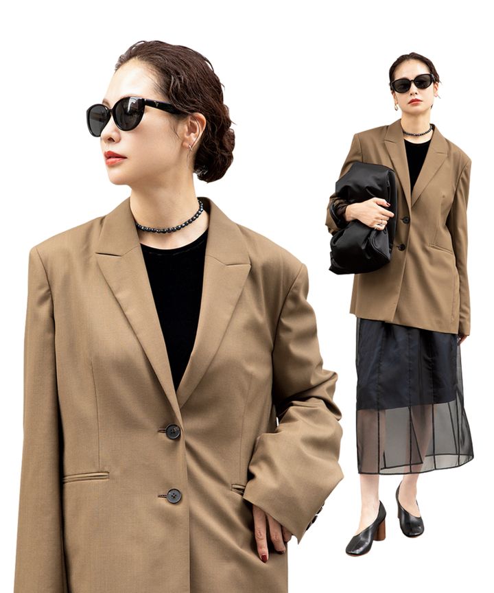 シアー使いがGOOD!ブラウンジャケットに合わせて上品に【二ノ宮和佳子さんの私服スナップ】