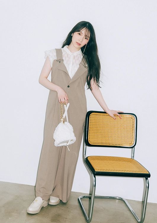 ブラウス¥8,580、オールインワン¥17,600/ともにココ ディール ピアス¥31,600/ENAK.(.. エナッ)バッグ¥13,200/ノエラ ローファー¥19,800/ダイアナ(ダイアナ 銀座本店)