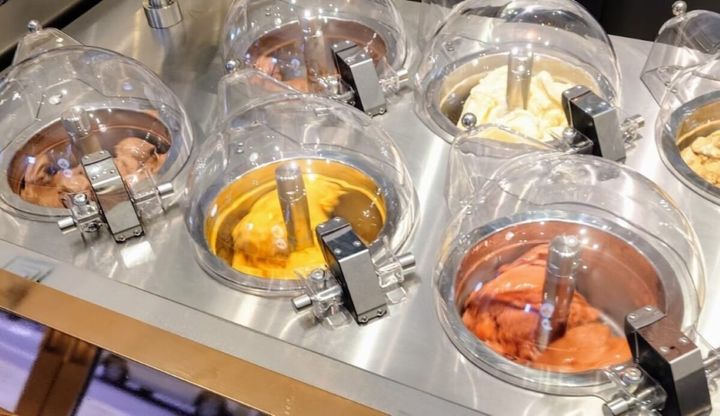 注目は国内初上陸したベルギーで人気のアイスクリーム「タービネ ミニュット」。特別な機械でかき混ぜ続けることで空気を含み、常にできたての軽やかな食感をキープしています。