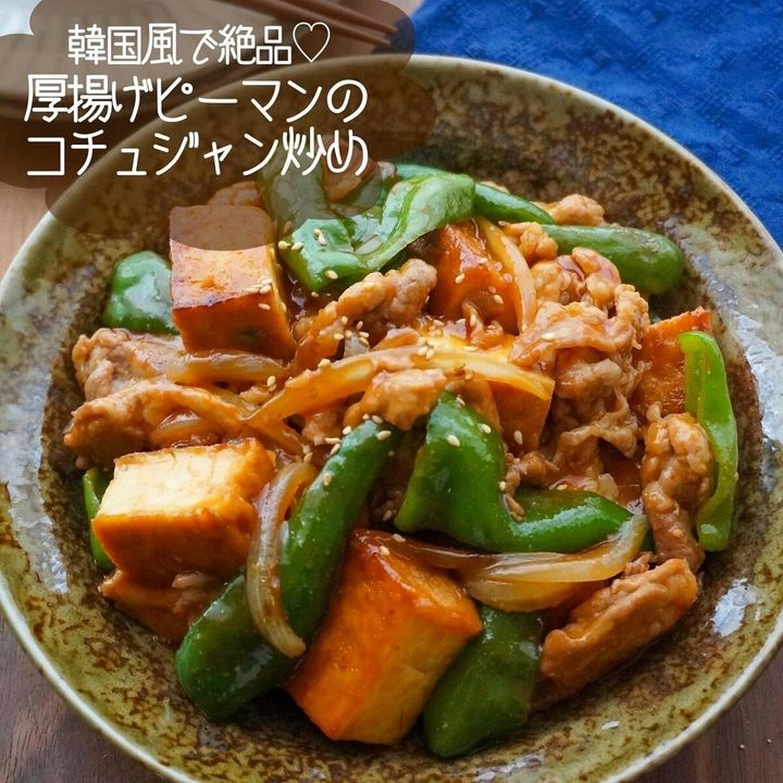 1. 豚肉と厚揚げピーマンのコチュジャン炒め