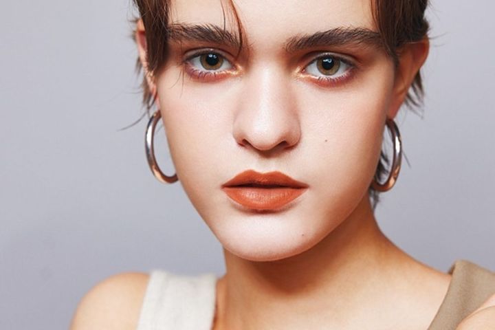 深い色みゆえドライな質感に目が行くブラウンリップ。これからの重衣料との相性を見据えれば、湿度をまとえるようなみずみずしいリップも選択肢として有効。