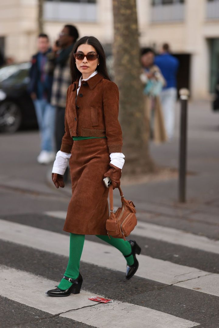 3. 2024-25年秋冬の足もとはミュウミュウの極厚タイツが気分!防寒とこなれ感が叶う万能ボトムの着こなし【SNAPに見る今日のスタイルヒント】