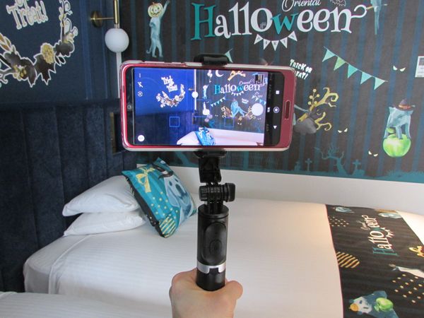 ハロウィーンルームに泊まったら、今日の思い出を写真で撮りたい!と思いますよね。そんなときにうれしいフォトプロップスや自撮り棒も部屋に用意されています。※備品のため、持ち帰りはできません