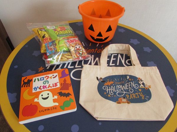 こちらの部屋はファミリー向けということもあり、オリジナルトートバッグやお菓子の詰め合わせに加え、ハロウィーンにちなんだ絵本(持ち帰り不可)が用意されています。