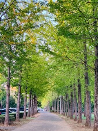 駐車場沿いに見事なイチョウ並木がありました。紅葉の時期は見事でしょうね。