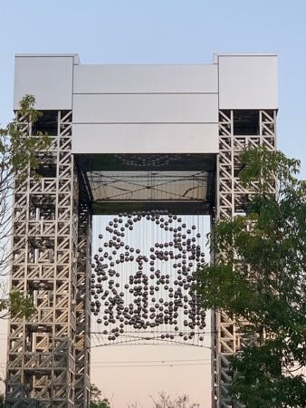離れたところから見ると、見る方向によって4人の科学者の顔が浮かび上がって見えるようになっています。 (東側:エジソン、西側:アルキメデス、南側:ニュートン、北側:ガリレオの顔) こちらは、誰の顔かと言うと・・・。