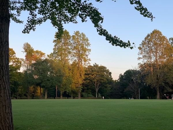 公園内をぐるっと周ってくると、遠くに夕日に照らされて輝くモニュメントが!