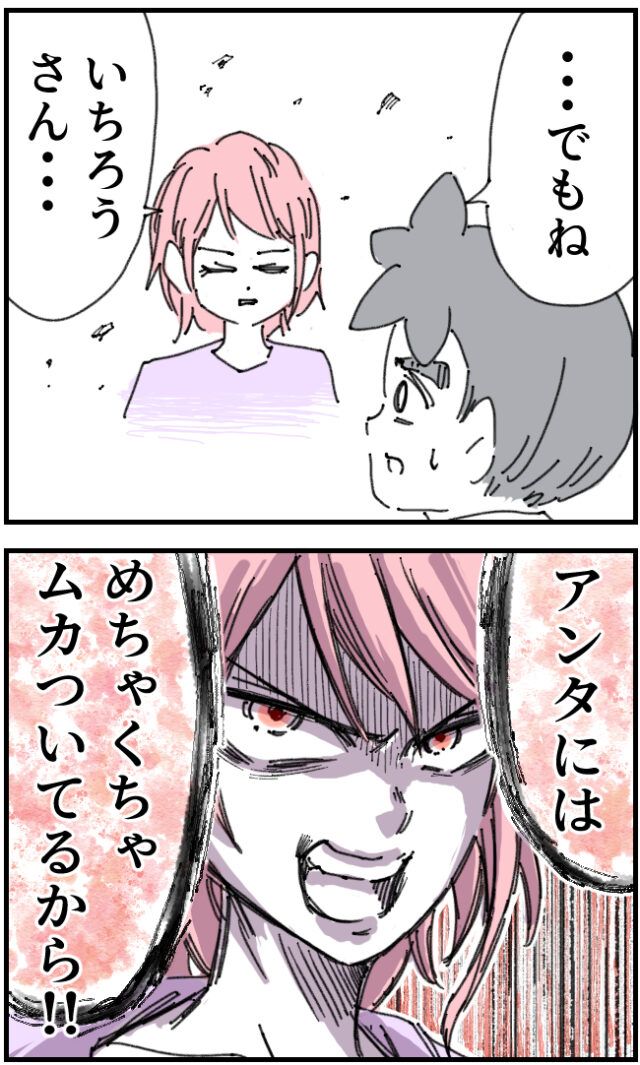 しかし、いちろうさんには違いました。「・・・でもね、いちろうさん。アンタにはめちゃくちゃムカついてるから!!」かおりさんはいちろうさんに対し怒りを露わにします。