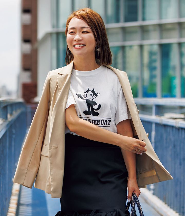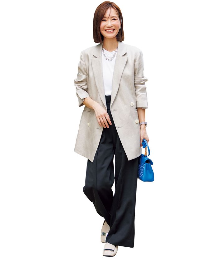 『歯科医の勉強会にはジャケットがマスト。着慣れたTシャツ+黒ワイドパンツのワンツーコーデも、優しげに見えるうえに、こなれ感が出せるので新鮮なんです。』