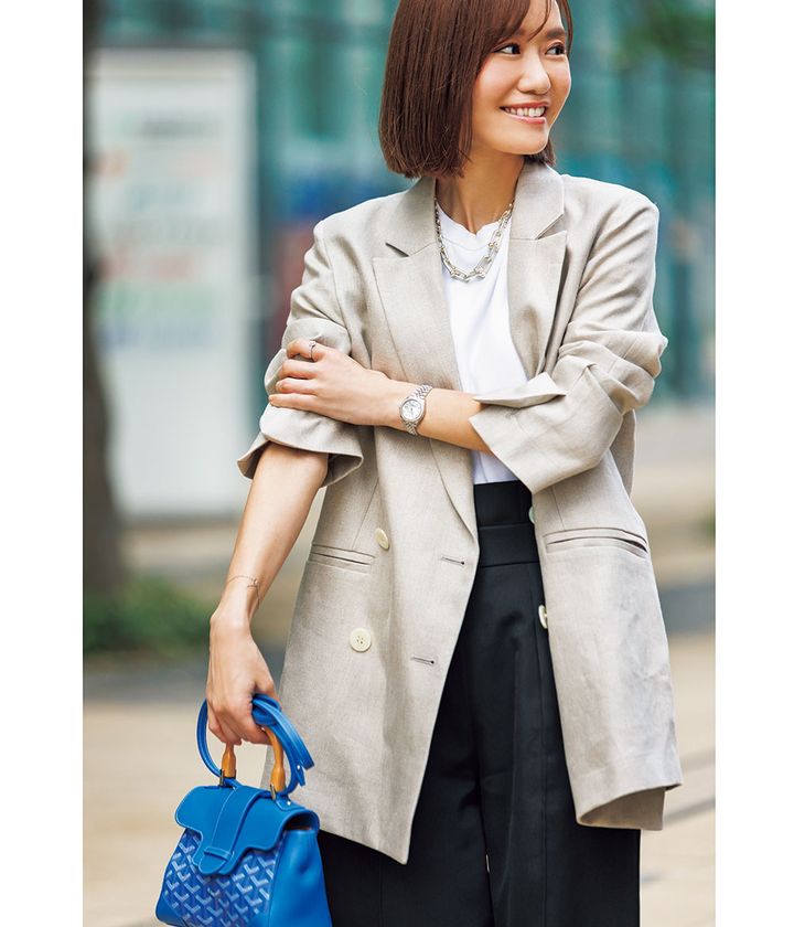 40代のお仕事シーンといえば紺ジャケットが定番でしたが、それよりも柔らかい印象を与えたい、とベージュジャケットを新調する人が続出。