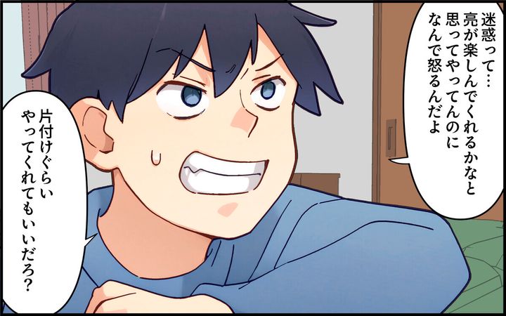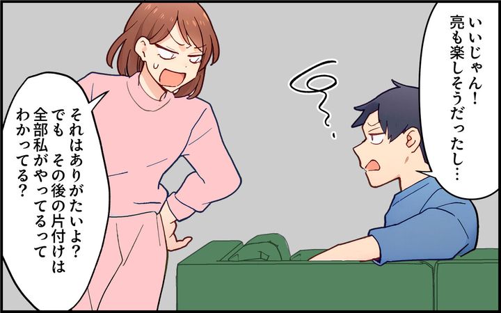 「亮の着替えと片づけは?」という真美に対して「それは真美の役目だろ」と陽介。