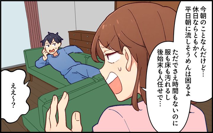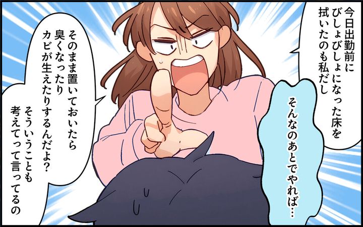 ・それに学習しない旦那の後片付けなんてやめて放置しちゃえば? 片付けてくれる人がいるから直んないんだよ、こういう男は。