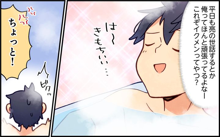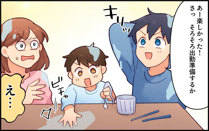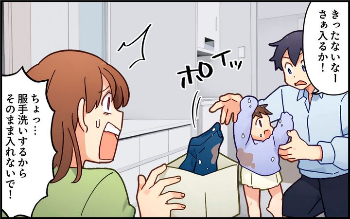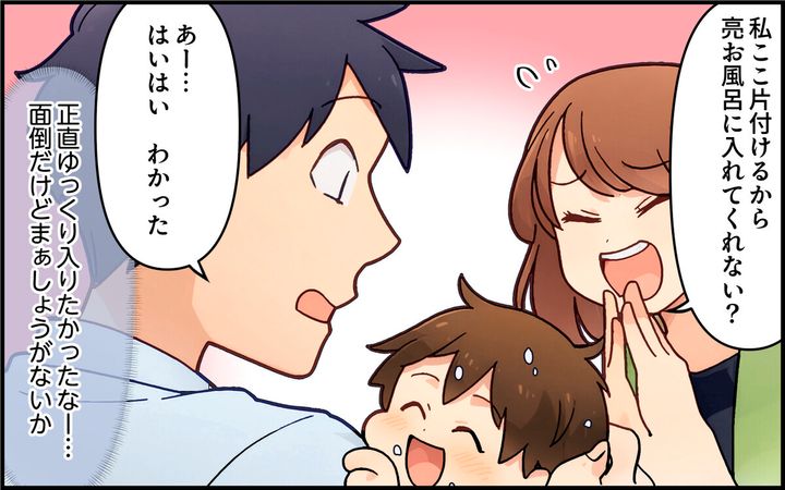 ・いやいや…お風呂でもろくに洗わない挙句、奥さんも仕事してるのに、平日の朝から勝手に好き放題遊んでその後始末は丸投げって…。ただのいいとこ取り夫よりタチが悪いです!