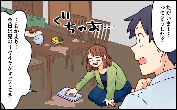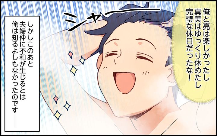 真美は夫の陽介、息子の亮と3人暮らし。陽介は育児にも積極的ですが、詰めが甘くて中途半端。そんな陽介に真美はイライラする日々を送っていました。