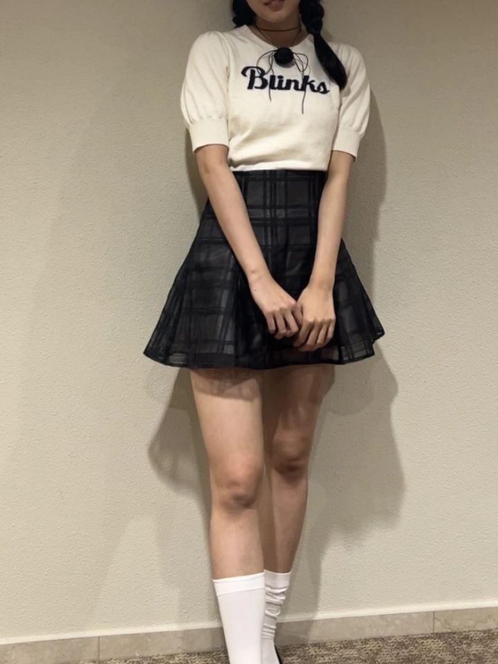 ロゴ刺繍ニットプルオーバー/ems excite チェックフレアミニスカート/GRL