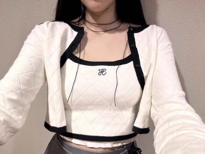 配色ニットキャミソールカーディガンセット/Heather ダブルリボンミニスカート/apres jour mignon
