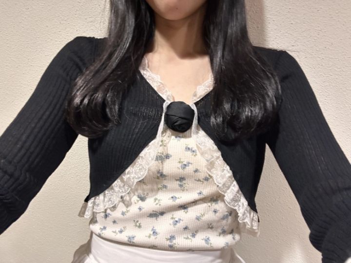 Use it! バラコサージュをカーデに付けてフレンチガーリーに