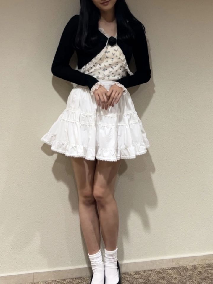 レースカーディガン/one after another NICE CLAUP 花柄キャミソール、レースティアードミニスカート/ともにems excite